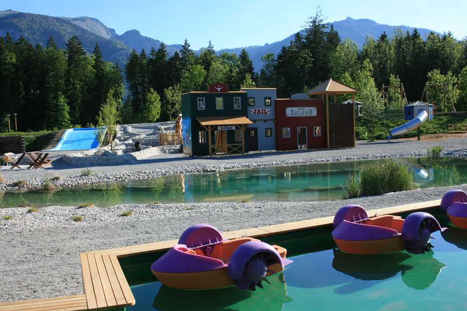 In der Westernstadt könnt ihr beim Klettern zeigen was in Euch Cowboys steckt oder ihr paddelt im Mini-Wolfgangsee mit euren Freunden um die Wette.